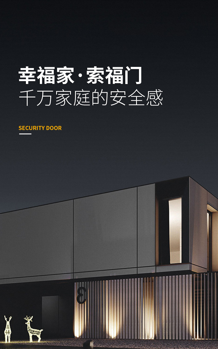 索福為實現多元化綠色發展,產品品類由原來的防盜門、防火門、鋼木裝甲門、拓展延伸出高端鑄鋁門、精品安全門、室內無漆木門、智能鎖、保險柜、保險箱、防火窗等以房配為核心的建材企業,同時設立獨立自主的門業檢測中心和國際化展廳來推進產品質量和服務體系.......。